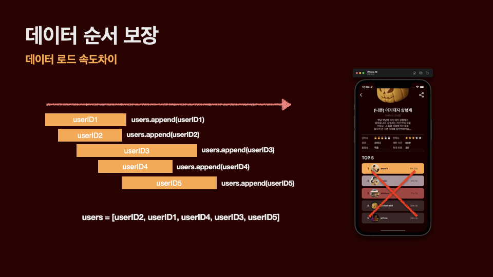 - userID로 재요청하는 data들의 순서가 보장되자 않는다!!