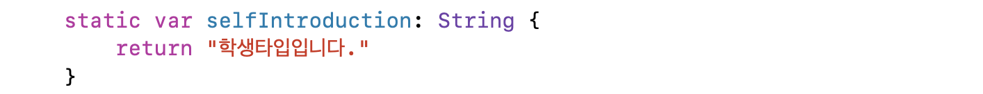 타입 프로퍼티는 클래스나 구조체에서 static, class를 쓰고 만드는 프로퍼티입니다. 이러한 타입 프로퍼티도 연산 프로퍼티로 만들 수 있습니다.(타입 연산 프로퍼티)