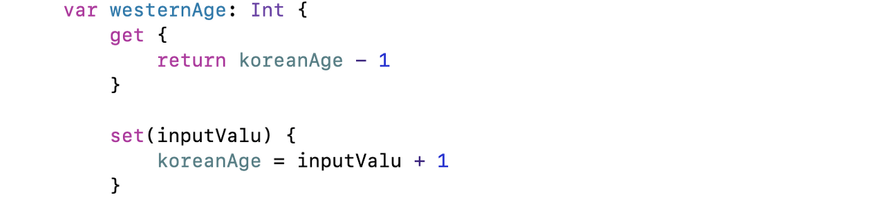 - 연산프로퍼티는 var로만 선언할 수 있습니다.
