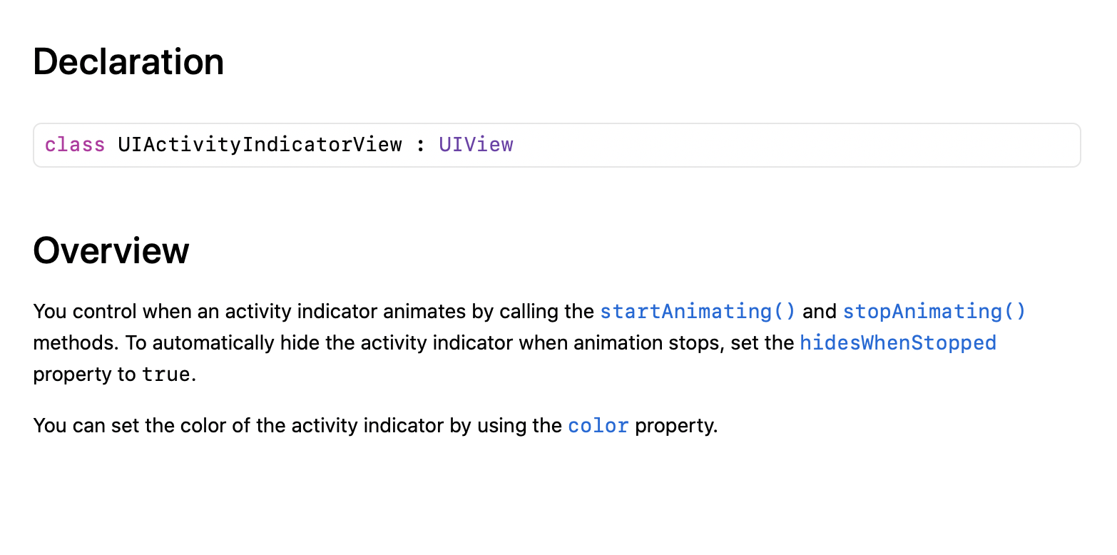 - hideWhenStopped 프로퍼티를 true로 하면 Indicator 애니메이션이 멈추면 뷰는 자동으로 hide됩니다.