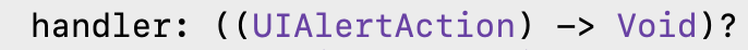 handler: action버튼이 눌려지고 나서 이후에 실행되는 클로저