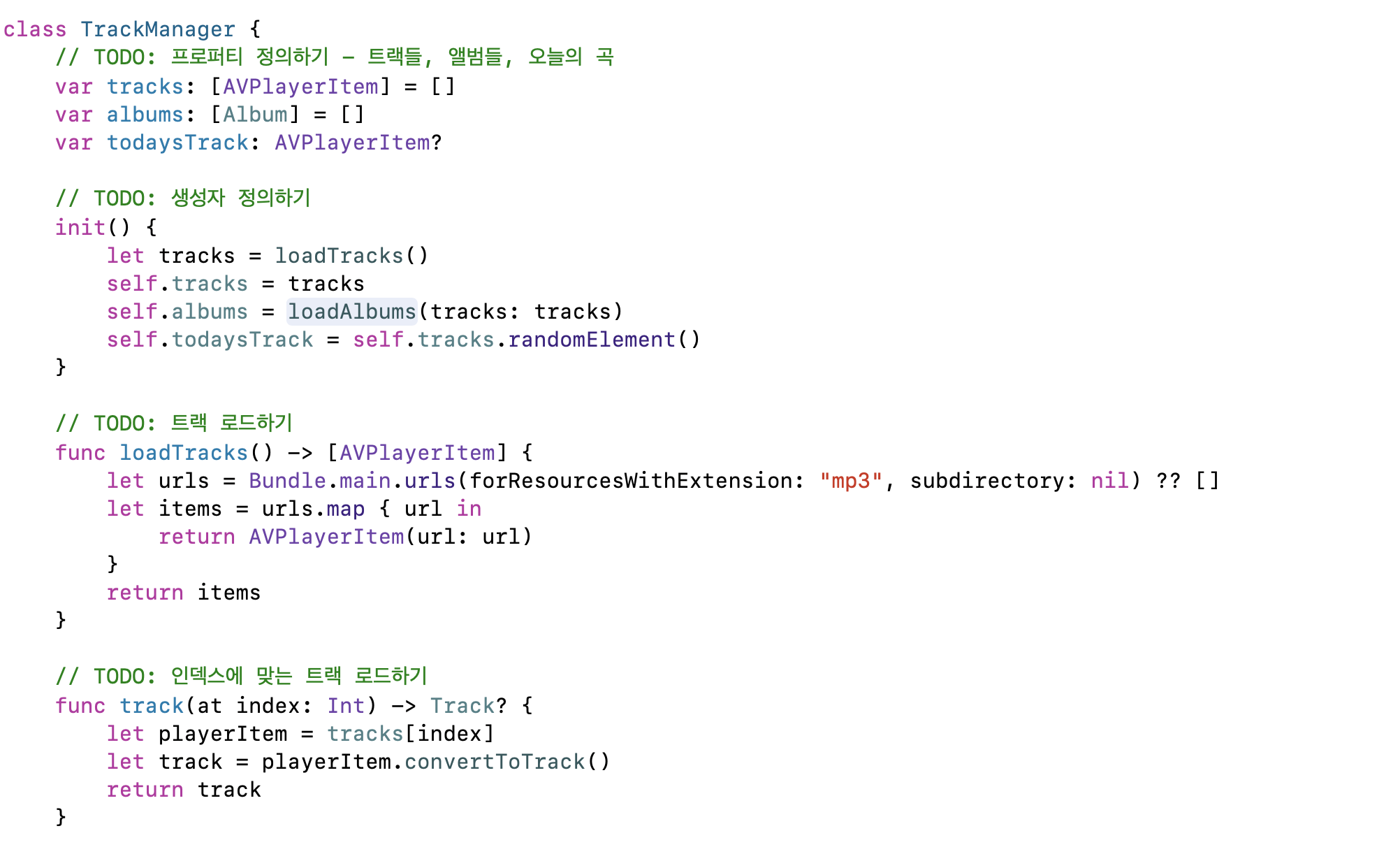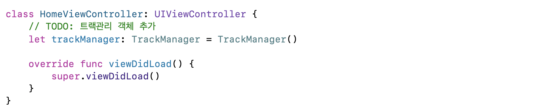 ViewController안에 trackManager를 만들어줍니다. 이 친구가 ViewModel의 역할을 합니다.