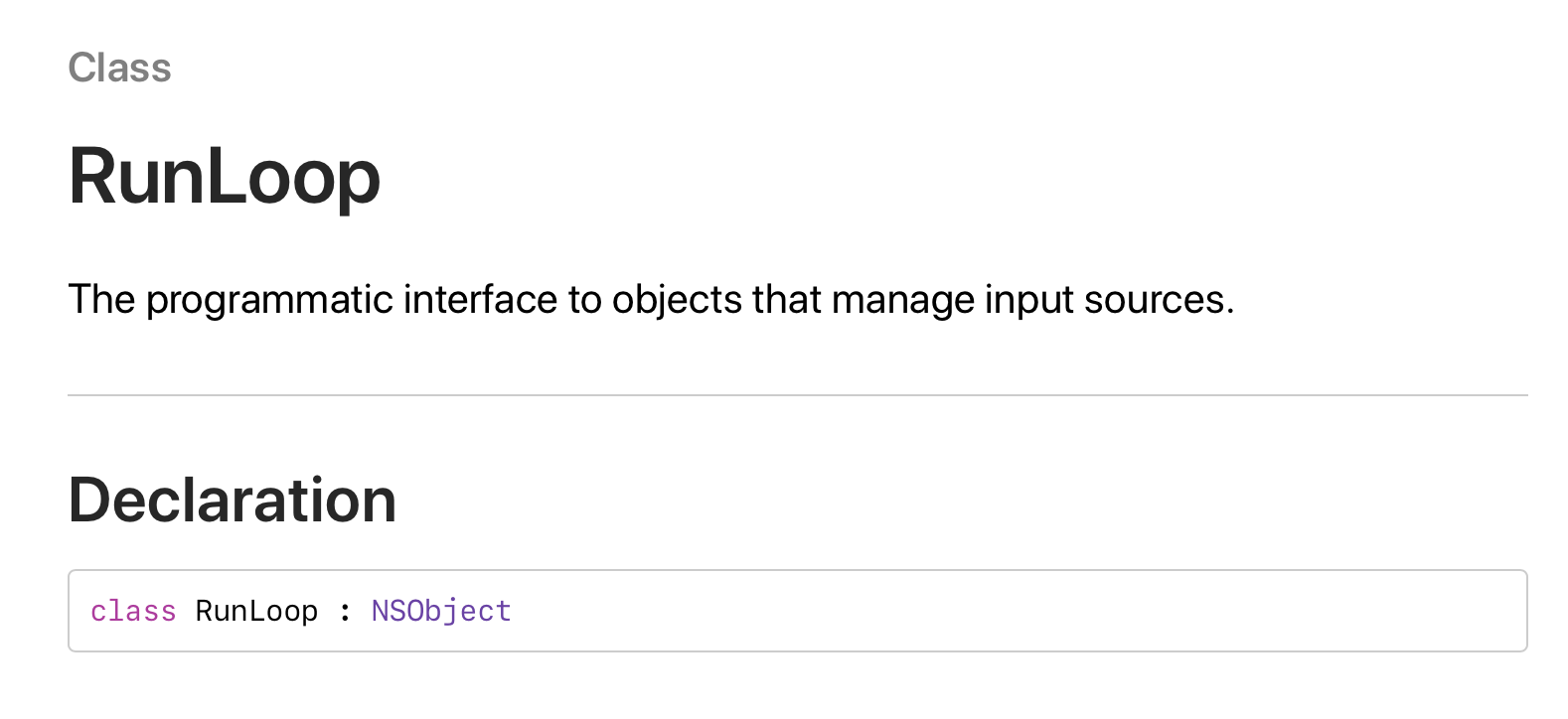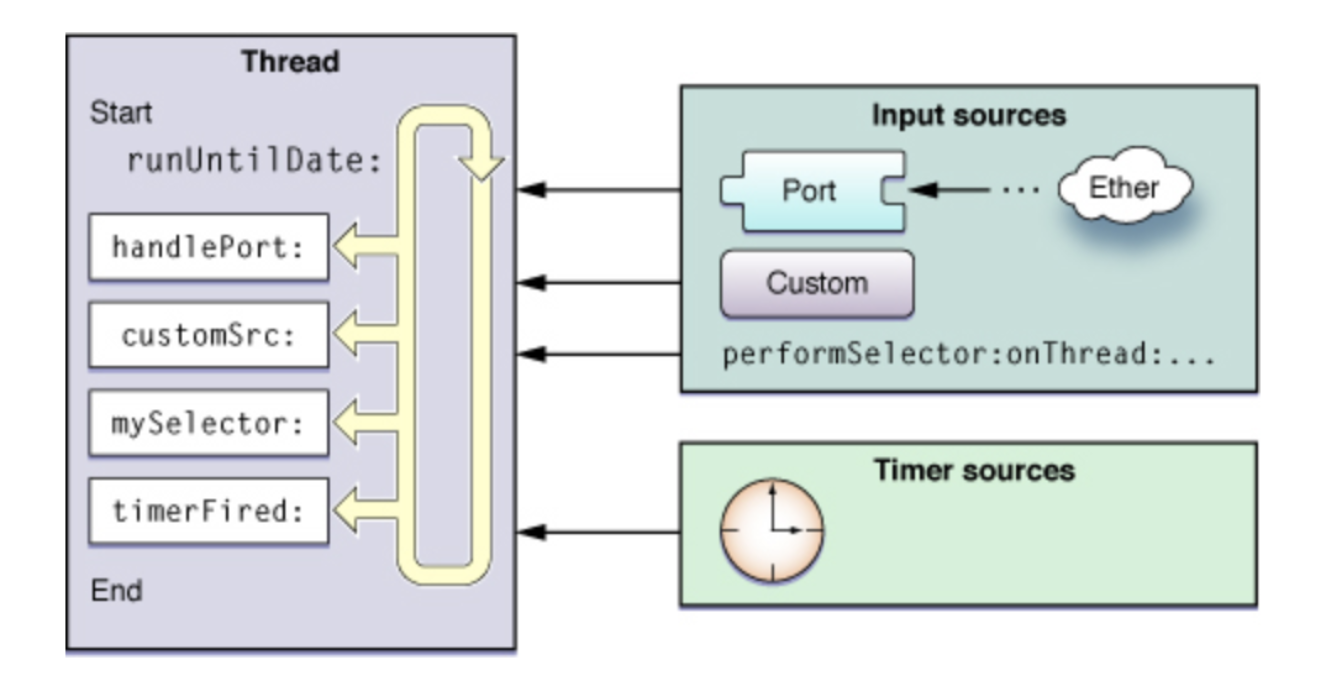 - RunLoop 객체는 소켓, 파일, 키보드 마우스 등의 입력 소스를 처리하는 이벤트 처리 루프로 쓰레드가 일해야 할 때는 일하고, 일이 없으면 쉬도록 하는 목적으로 고안되었습니다.