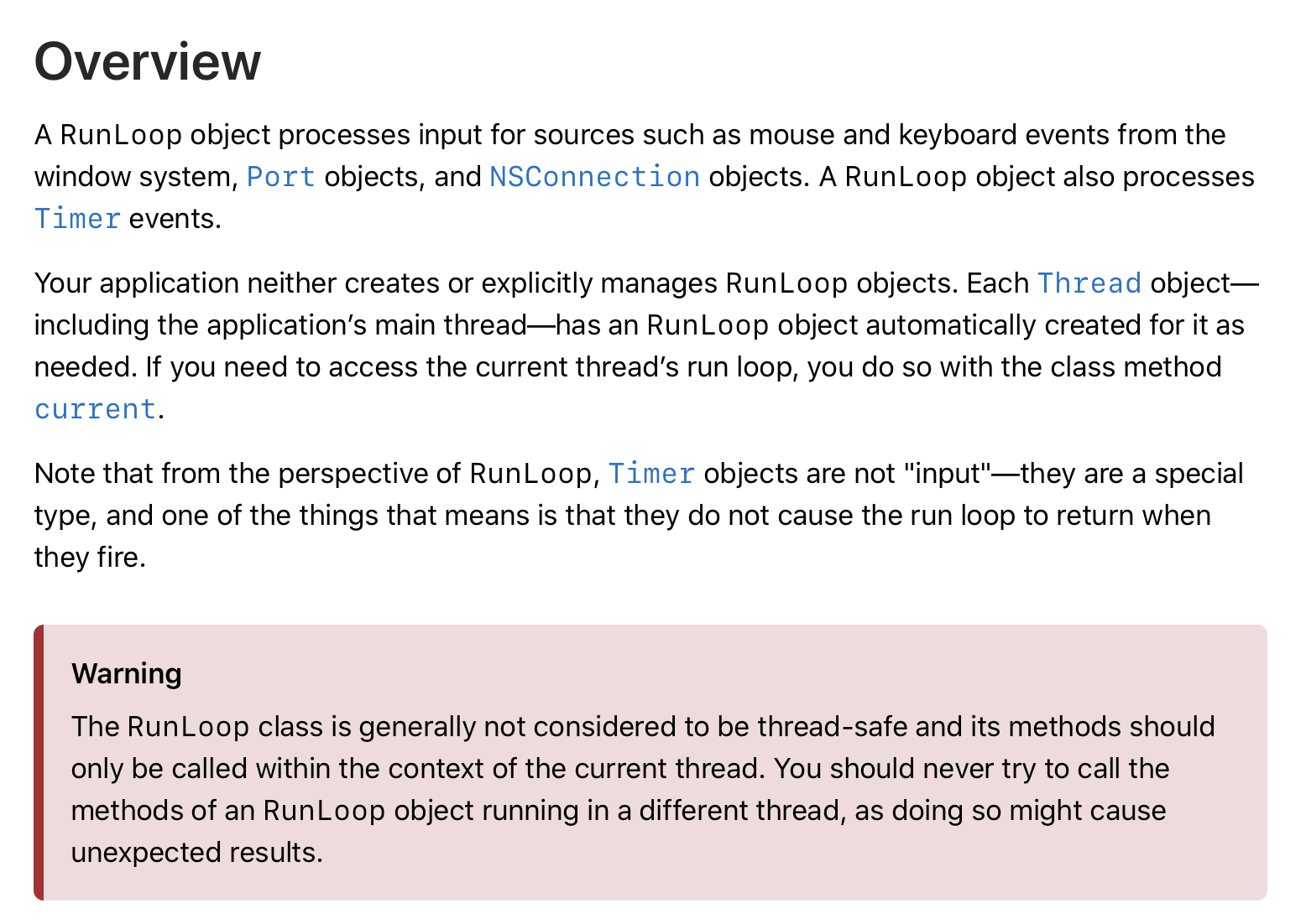 - 메인 스레드는 자동으로 RunLoop 설정하고 실행 시켜주는데 프로그래머가 따로 생성한 스레드에서는 프로그래머가 직접 설정하고 실행해주어야 합니다.