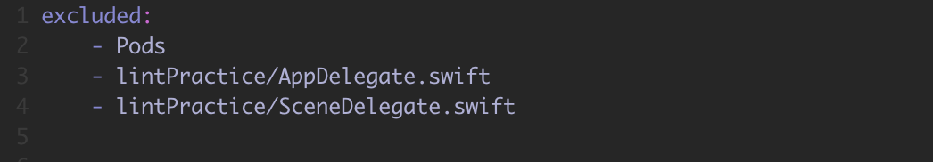 사용자 설정을 위해 .swiftlint.yml 파일을 작성해야 합니다. (숨긴파일 맞음)