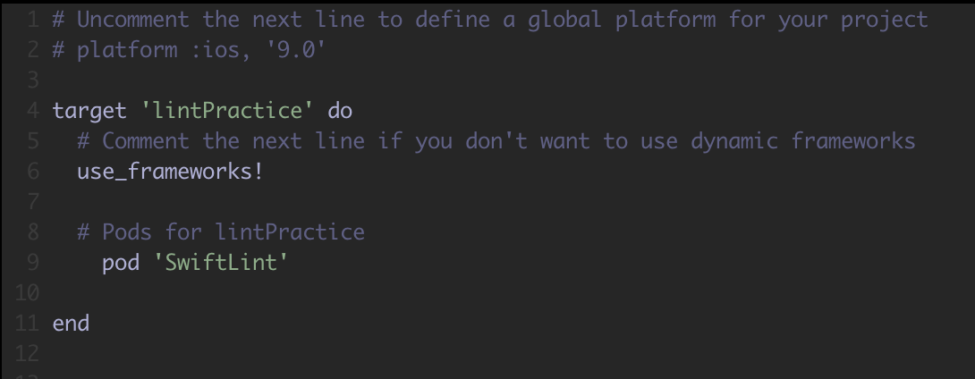2. Podfile에 pod 'SwiftLint' 추가!! -> pod install