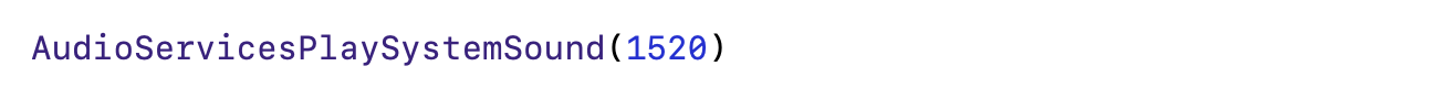 - AudioServicesPlaySystemSound(1520) // Actuate "Pop" feedback (strong boom)