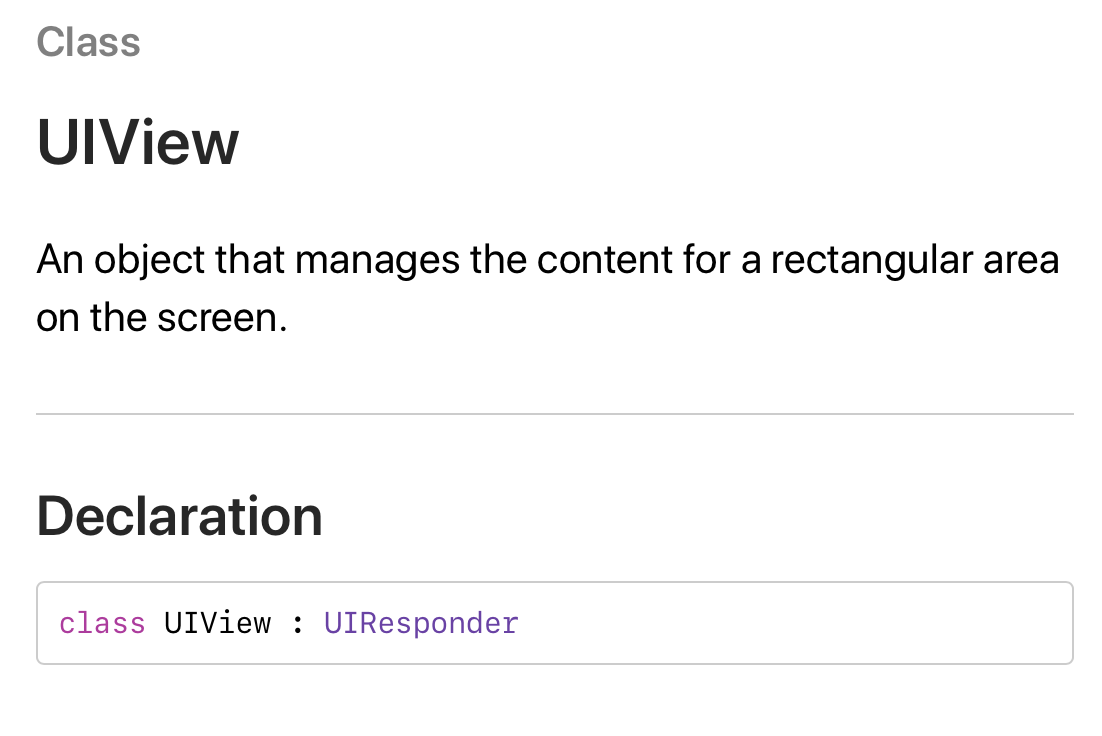 - View는 UIResponder의 하위 클래스입니다. (UIResponder 딱기다려) 그래서 터치 및 여러 이벤트에 반응합니다.
